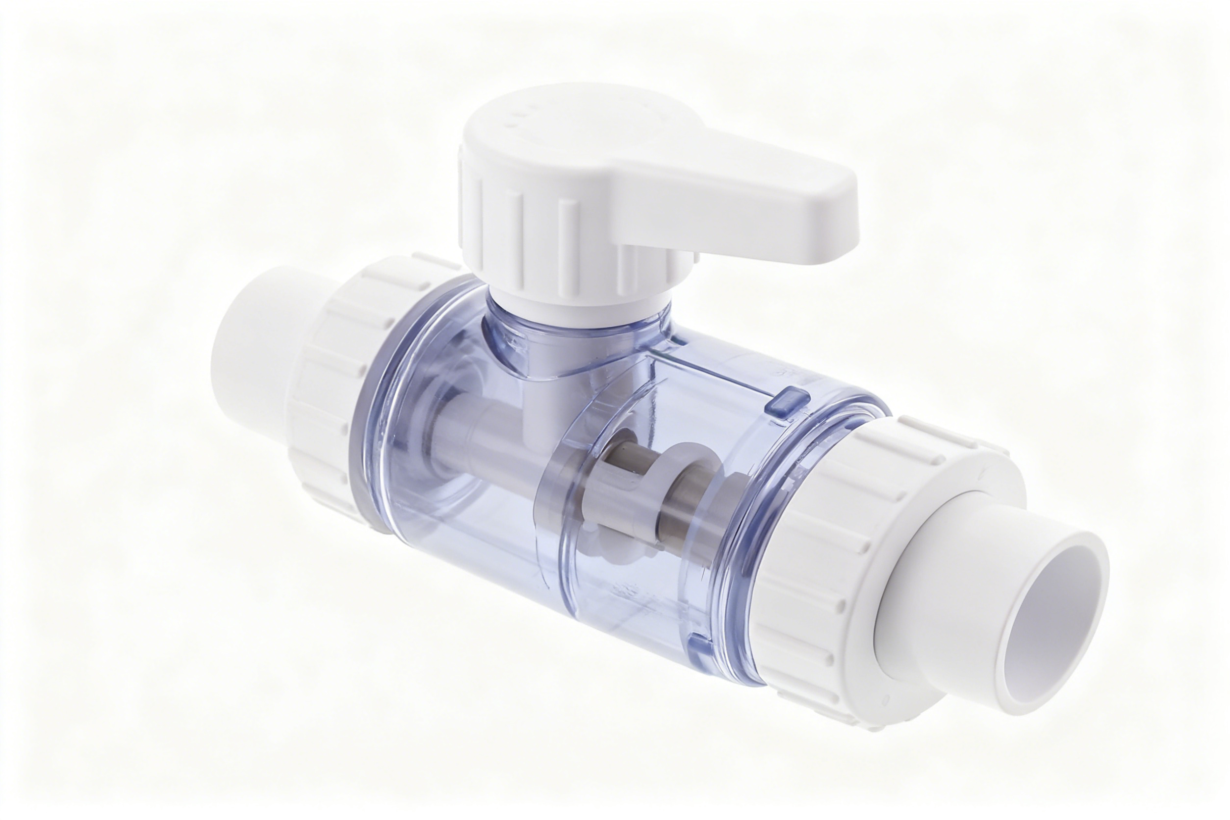 医疗级 True Union 球阀 – 高清晰度 PVC/PVDF 流体控制阀,带 PTFE 阀座和 EPDM 密封件,适用于临床和实验室应用